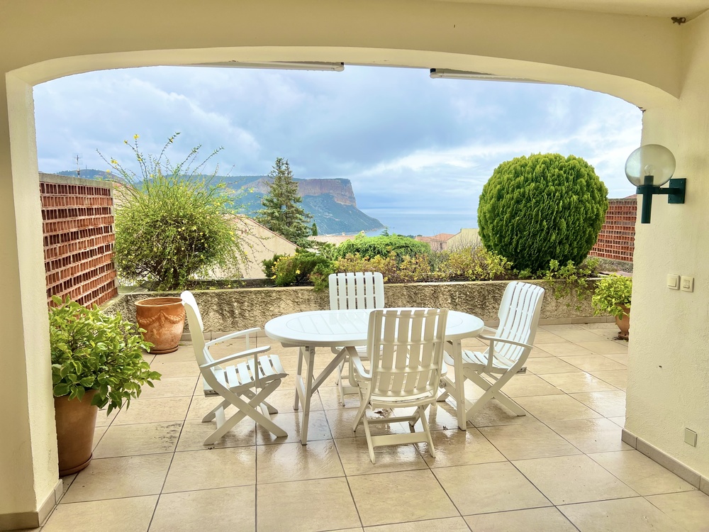Located on the sought-after heights of Cassis, in the desirable Terrasses neighbourhood, this beautiful 126 m² unfurnished villa, semi-detached on both sides, offers a most pleasant living environment with breathtaking views of the sea and Cap Canaille.