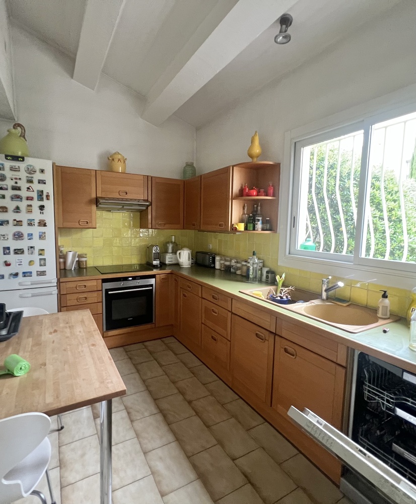 Une cuisine séparée, entièrement aménagée et équipée.