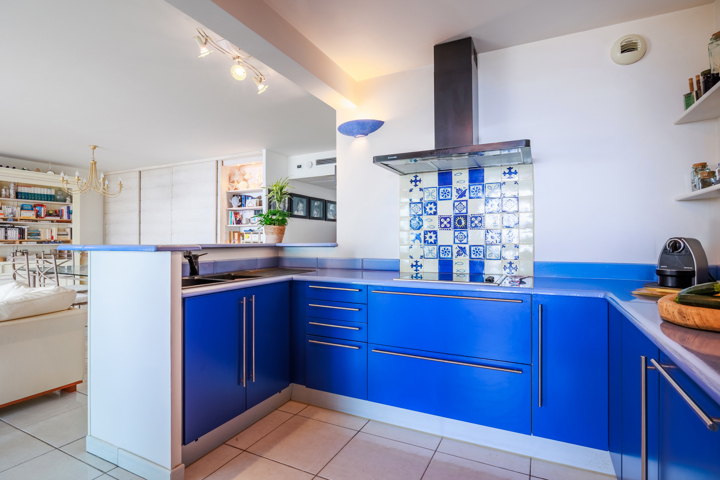 Sa terrasse plein ciel de 23 m², sentiment d'être suspendu au-dessus de la mer, offre un panorama exceptionnel sur la Grande Bleue et le Cap Canaille plongeant dans l’eau.