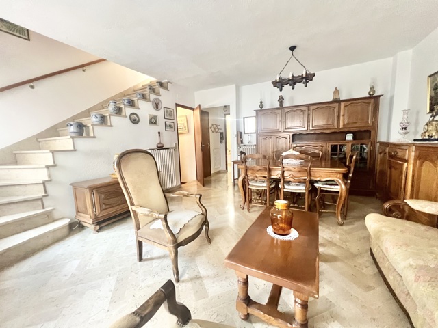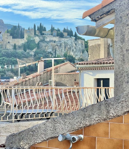 au premier étage un appartement de type 3 en duplex composé d'un salon, cuisine avec loggia, une chambre, une salle de bains, wc et à l'étage une chambre, un wc avec lave-mains et une terrasse tropézienne avec vue le château de Cassis et le Cap Canaille